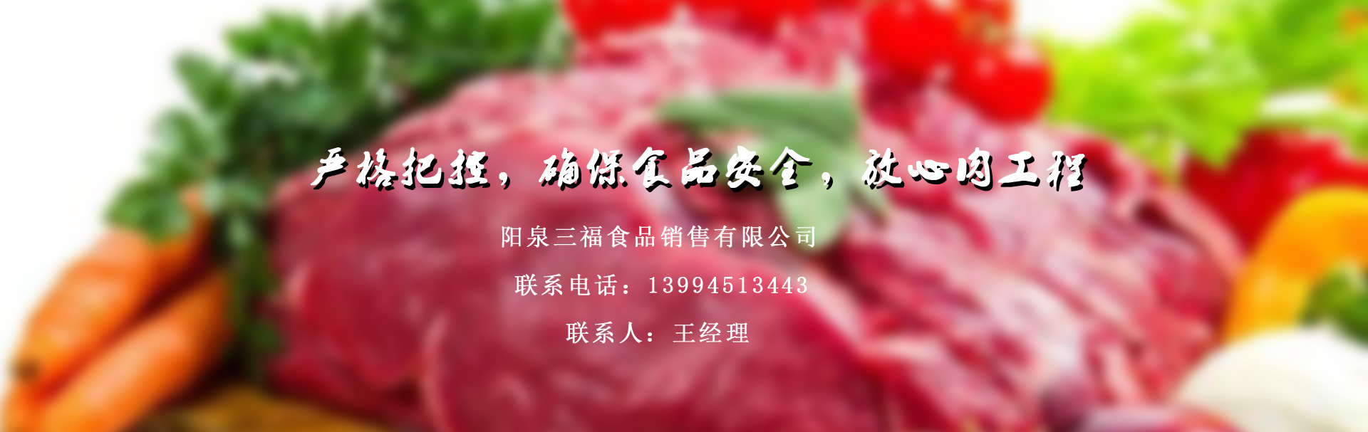 陽泉三福食品銷售有限公司成立于二零零六年九月,位于陽泉市城區(qū)桃南中路28號,資質為一般納稅人,是政府批準的合法具有外調肉類的單位之一。在2012年獲得中國人民銀行頒發(fā)的AAA機構信用代碼證。現主要提供以下供貨渠道: 1、 冷鮮肉類的批發(fā) 2、 凍貨...